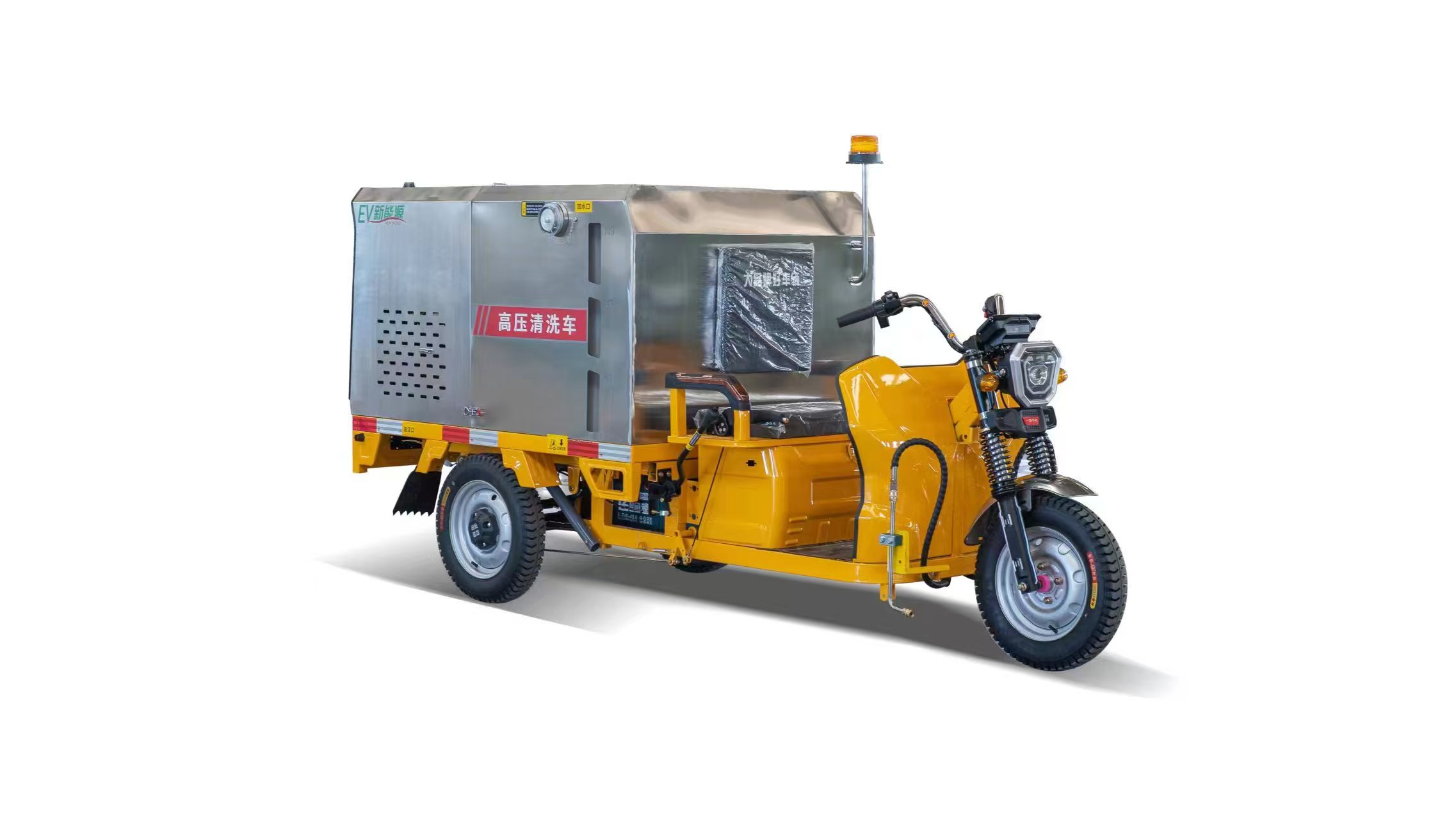 Z600E纯电三轮高压冲洗车是电动三轮车、水箱、高压清洗机的集合,它出水压力大,出水量大,冲洗效果好,冲洗效率高。它自带水箱,省去拉和收水管,它使用锂电作为电源,省去拉和收线缆,使用方便。它由锂电提供电源,噪音小、不产生排放,节能环保。